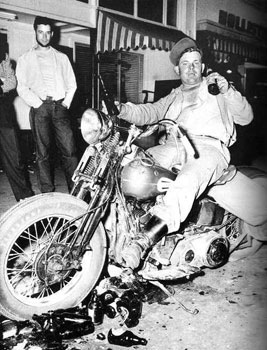 In 1953, the film The Wild One starring Marlon Brando was released. The film was inspired by the sensationalized press coverage of the Hollister rally and set in the public mind the stereotype of the “outlaw biker”. This led to some embracing the image, and further changed the MC community.